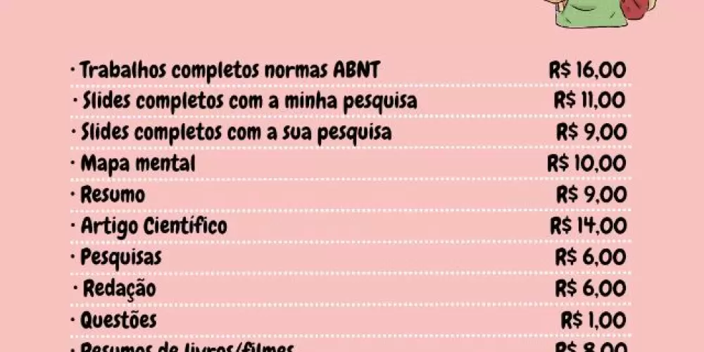 Faço qualquer tipo de trabalho acadêmico, por um preço acessível e justo.
